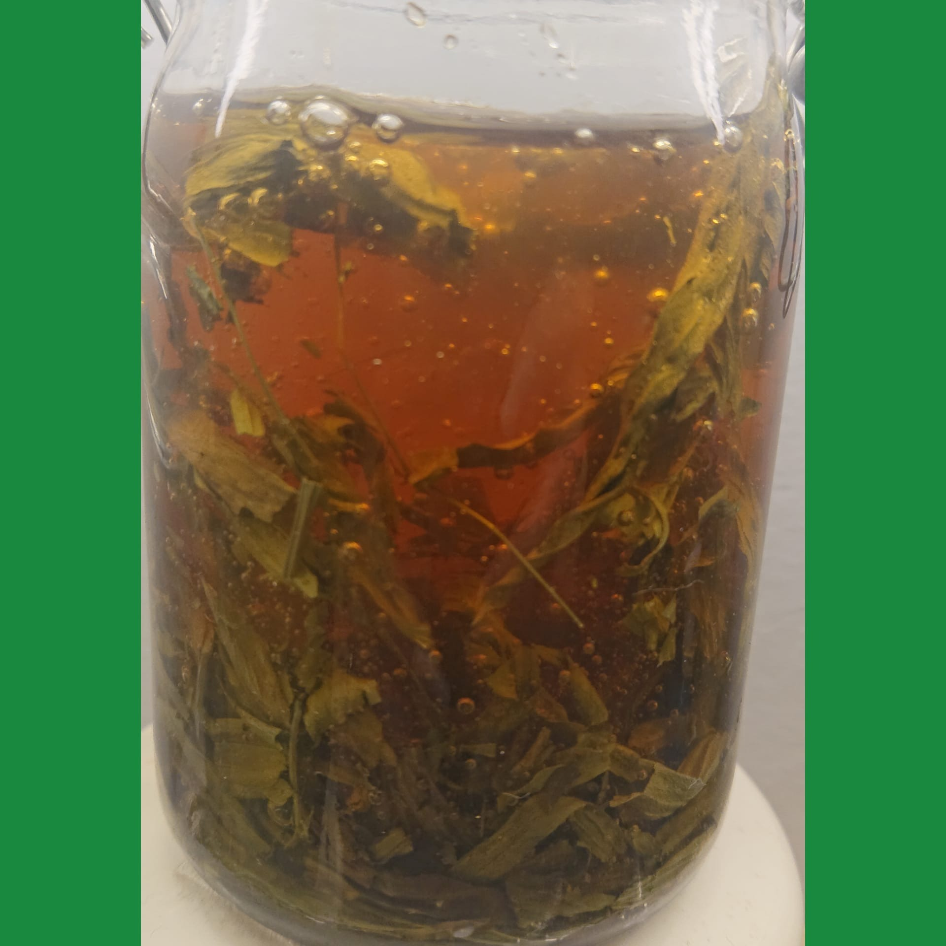 In dieser Zeit ab und zu das Glas wenden, damit sich alles gut vermischt und sich die heilenden Inhaltsstoffe der Pflanze verteilen.